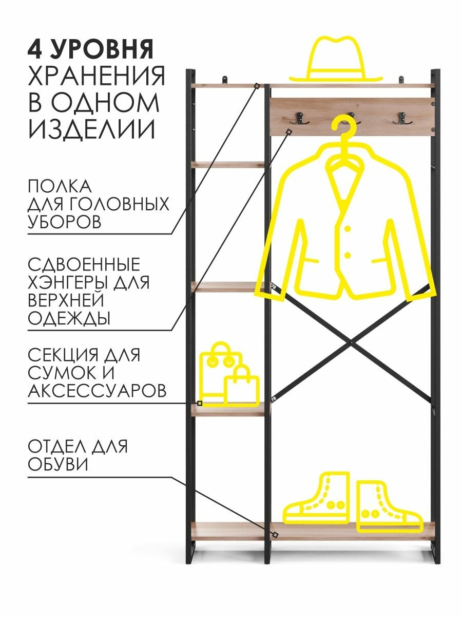 Гардеробная система хранения в прихожую металлическая, вешалка напольная для одежды дуб крафт золотой 92х34х180 см: сравнение цен, характеристики, фото, актуальное наличие и цены.