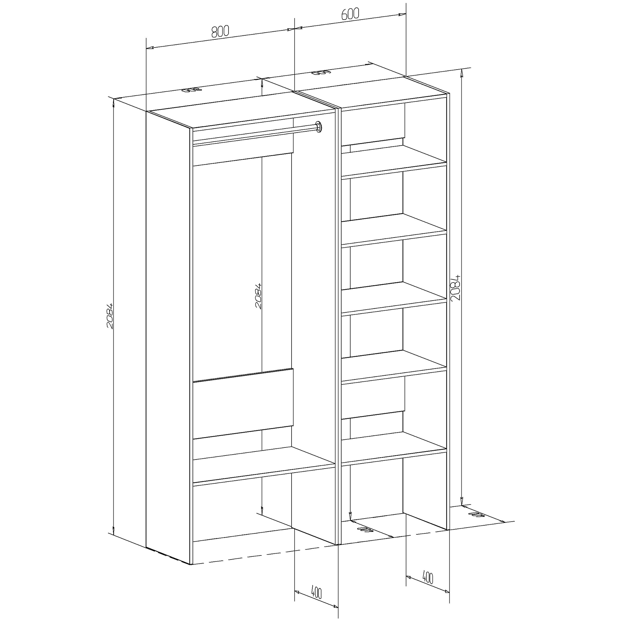 Купить Гардеробная система Комплект стеллаж Модус № 10 140х40х208,4 см с доставкой по всей России.