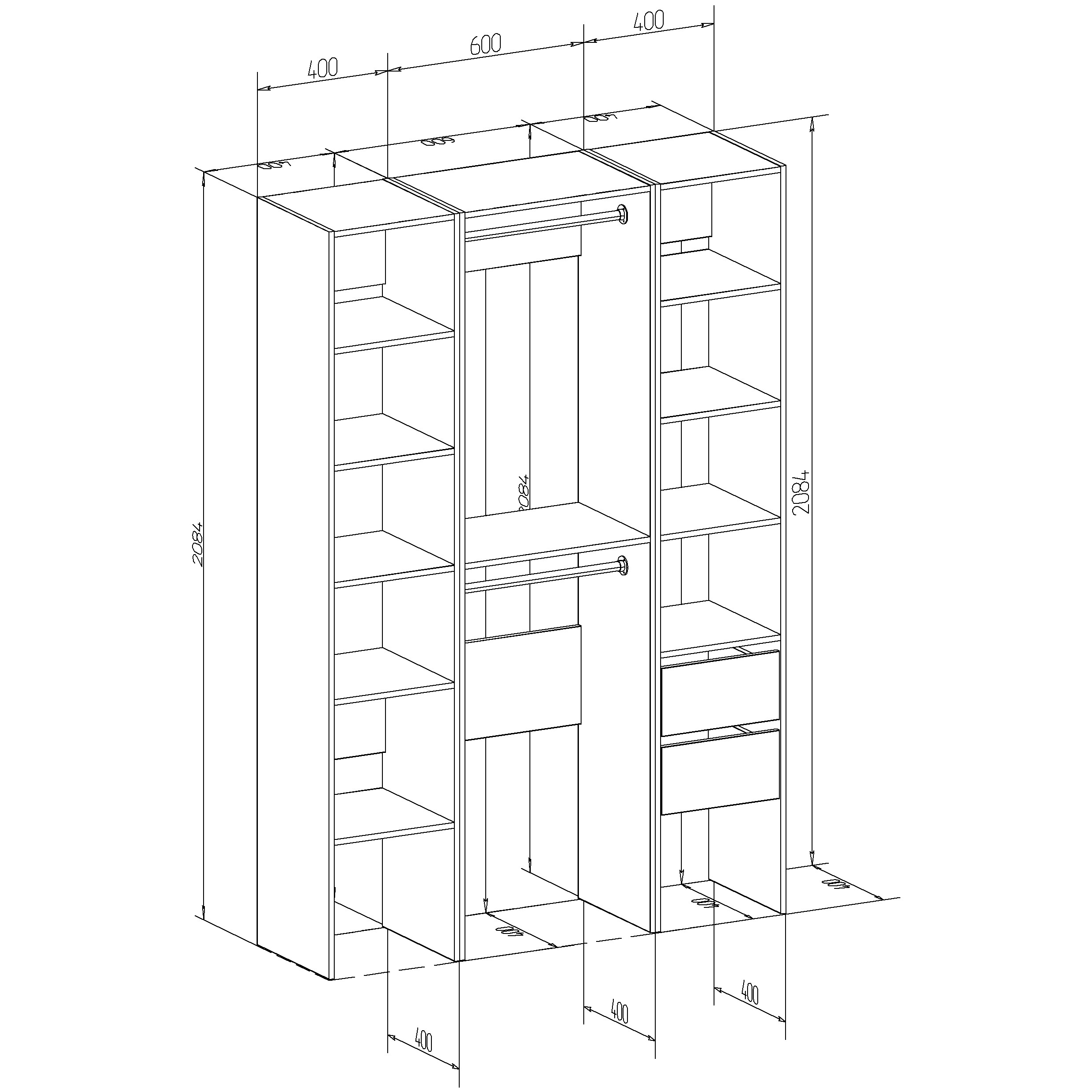 Купить Гардеробная система Комплект стеллаж Модус № 12 140х40х208,4 см с доставкой по всей России.