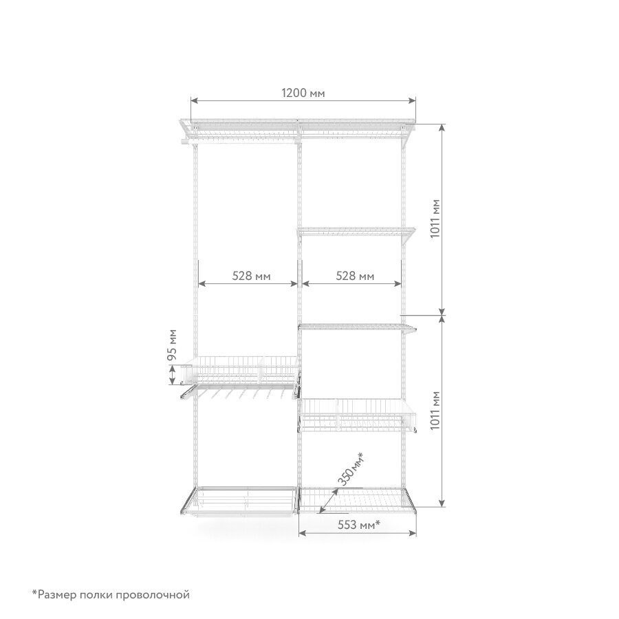 | Подробная комплектация | Рельс несущий 1200 мм для гардеробной системы LIGROOM, белый - 1 штНаправляющая 1011 мм для гардеробной системы LIGROOM, белая - 6 штПолка проволочная 553x350 для гардеробной системы LIGROOM, белая - 5 штКронштейн 377 мм для гардеробной системы LIGROOM, белый - 16 штПолка для обуви выдвижная для гардеробной системы LIGROOM, белая - 1 штВешалка для брюк выдвижная для гардеробной системы LIGROOM, белая - 1 штПолка-корзина проволочная 553x379x95 для гардеробной системы LIGROOM, белая - 2 штРазделитель полки корзины универсальный для гардеробной системы LIGROOM - 2 штДержатель для штанги для гардеробной системы LIGROOM, белый - 2 штШтанга для вешалок 600 мм для гардеробной системы LIGROOM, хром - 1 штЗаглушка для штанги для гардеробной системы LIGROOM, хром - 2 штКрепеж - 1 комплУниверсальная инструкция - 1 шт |
