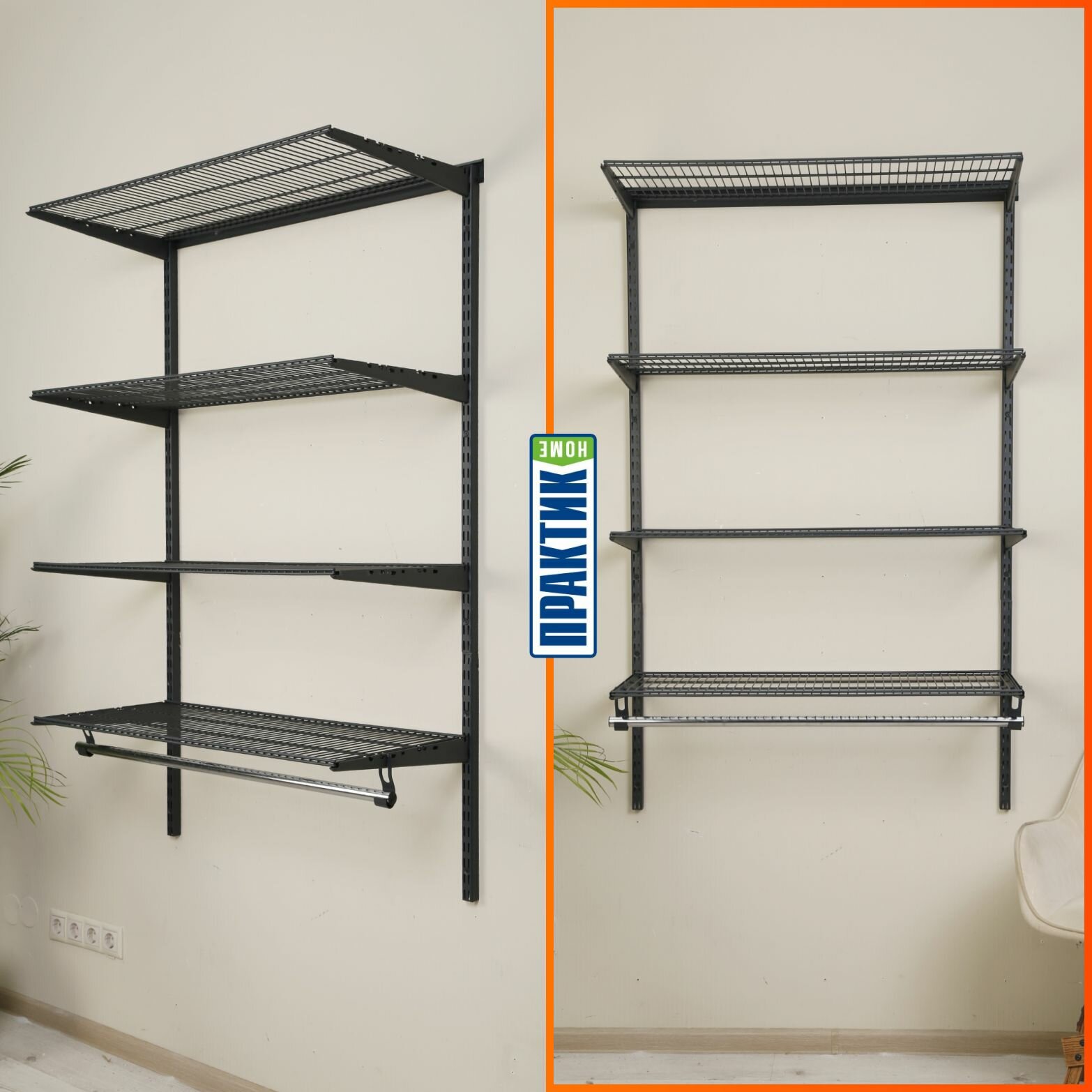 | Подробная комплектация | Полка сетчатая 60х40 - 5 шт, стойка 100 см - 3 шт, стойка 50 - 3 шт, кронштейн штанги - 4 шт, кронштейн полки - 9 шт, рельс несущий - 2 шт, штанга 60 см - 2 шт, комплект заглушек - 4 шт. |