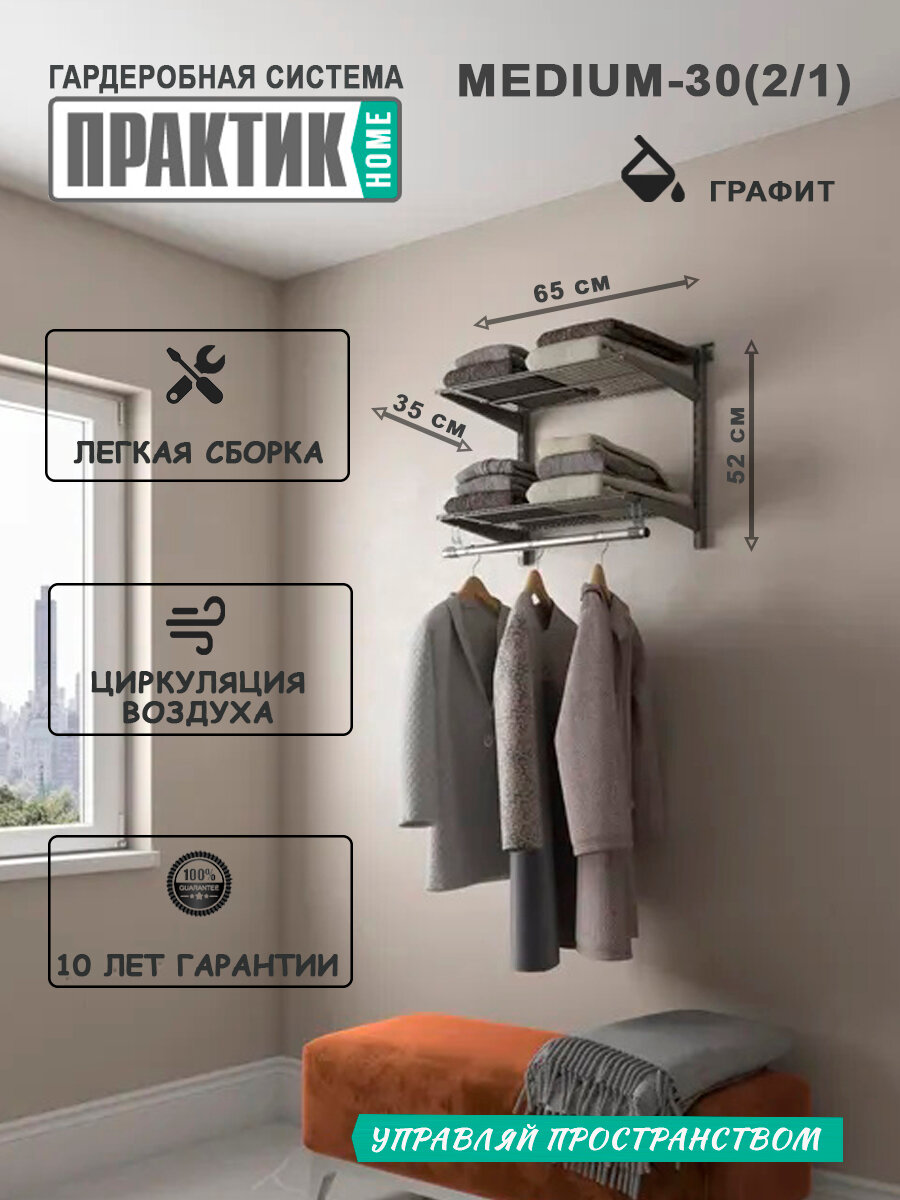 Гардеробная система «практик HOME medium-30(2.1)» графит: сравнение цен, характеристики, фото, актуальное наличие и цены.