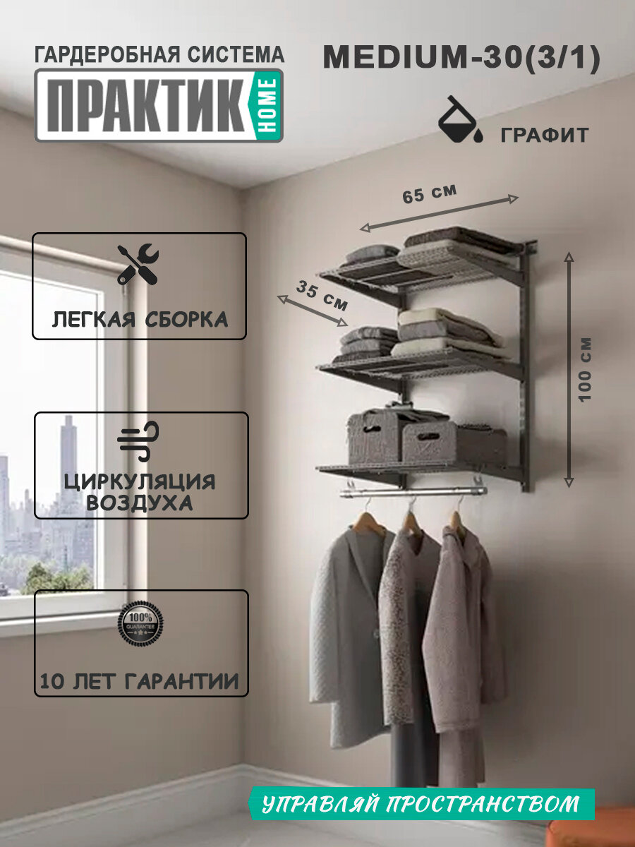Гардеробная система «практик HOME medium-30(3.1)» графит: сравнение цен, характеристики, фото, актуальное наличие и цены.