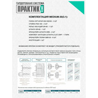 Полка-3шт; Стойка-2шт; Рельс-1шт; Штанга-1шт; Кронштейн штанги-2шт; Заглушки-1 пара; Кронштейн полки-6шт;