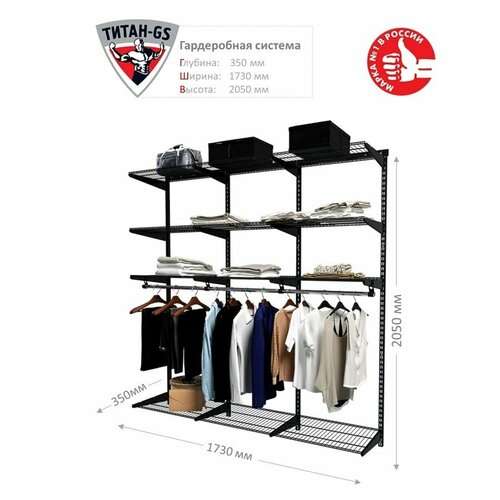 Гардеробная система выполнена из качественных материалов, что гарантирует ее долговечность и надежность. Элегантный черный цвет прекрасно вписывается в любой интерьер, добавляя sophistication и стиль вашему пространству. Конструкция системы не только функциональна, но и эстетически привлекательна.