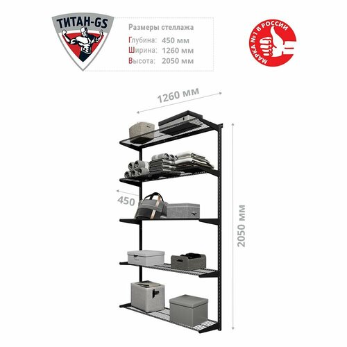 Купить Гардеробная система, система хранения Титан-GS Стеллаж пять полок 1200 черная 450 с доставкой по всей России. Гардеробная система, система хранения Титан-GS Стеллаж пять полок 1200 черная 450: сравнение цен, характеристики, фото, актуальное наличие и цены.