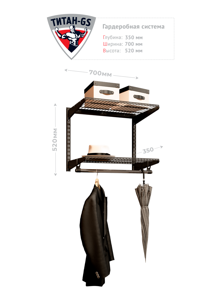 Гардеробная система Титан-GS Вешалка в прихожую, черная, 70*35*52 (Ш*Г*В): сравнение цен, характеристики, фото, актуальное наличие и цены.