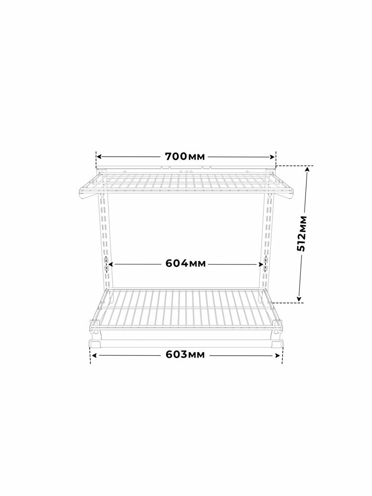 | Подробная комплектация | Комплект заглушек для перекладины – 1 шт Кронштейн для перекладины – 2 шт Кронштейн для полки 435 мм – 4 шт Несущий рельс 1000 мм – 1 шт Перекладина для вешалок 940 мм – 1 шт Сеточная полка 903x406 мм – 2 шт Стойка 512 мм – 2 шт Комплект крепежа – 1 шт |