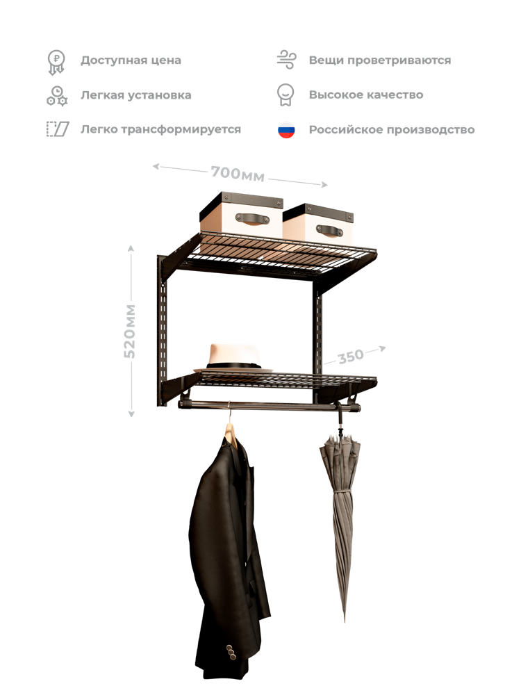 Купить Гардеробная система Титан-GS Вешалка в прихожую, черная, 70*35*52 (Ш*Г*В) с доставкой по всей России.