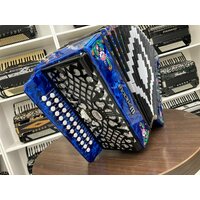 Гармонь «Шуйская» - 25х25-III – трехголосовый язычковый музыкальный инструмент, звукоряд которого основан на неполной хроматической гамме. Звуковой диапазон мелодии от ноты «ля» малой октавы до «ля» третьей октавы. Строй гармони выполняется в тональности– ЛЯ мажор = ФА диез минор, настройка - в розлив. Данная модель инструмента выпускается в двух вариантах:• без регистра – арт. С 51 XY• с регистром – арт. С 32 XYРегистр имеет два положения:• верхнее: инструмент звучит в три голоса• нижнее: инструмент звучит в два голоса. Голосовые планки - алюминиевые кусковые улучшенного качества, доведенные до высокого класса звучания за счет ручной доработки. Голоса стальные: облегчены, выправлены подъемы, зазоры минимальны. Настройка - в розлив (аккордеонное звучание). Сочетание голосов: основной, розлив, баритон. Клавиатуры: правая– двухрядная, пуговичная (25 клавиш). левая– трехрядная, кнопочная (25 кнопок). Резонаторы изготовлены из лиственных и хвойных пород древесины и имеют лаковое покрытие. Корпус гармони изготовлен из березовой клеевой фанеры и облицован целлулоидом, все поверхности которого отполированы и имеет овальную форму. Передние и верхние стенки корпуса украшены художественным орнаментом-росписью, выполненной в традиционном стиле палехской миниатюры. Роспись может быть инкрустирована ювелирными камнями. Правая и левая сетки изготовлены из алюминиевых листов и покрыты черной нитроэмалью. Меховая камера изготовлена из картона, оклеена х/б тканью, имеет 16 рабочих борин, Меховые углы - латунь.