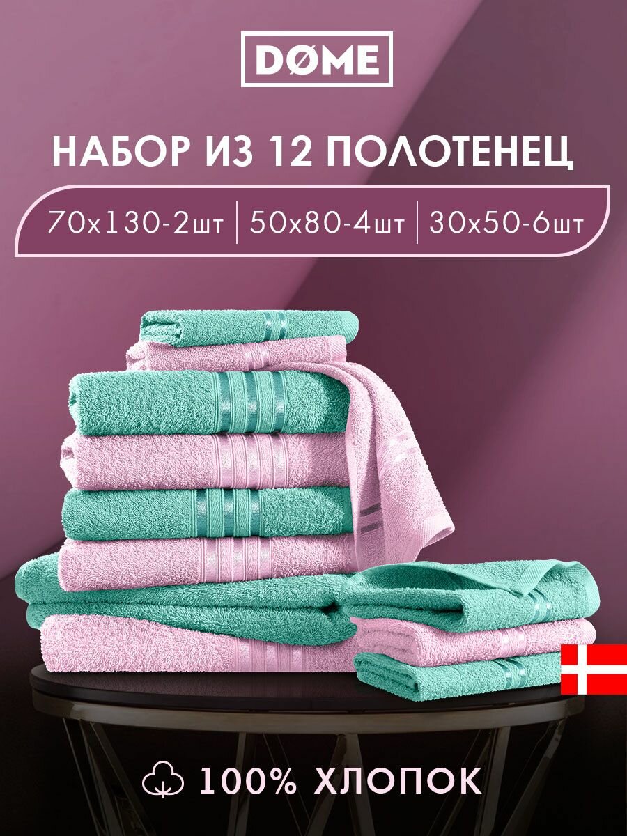 DOME «Гармоника» Комплект махровых полотенец, 30х50-6/50х80-4/70х130-2 хлопок, цвет розовый; мятный, 440 гр/м2, 12-пр: сравнение цен, характеристики, фото, актуальное наличие и цены.