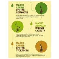 | Эффект | восстановление, облегчение расчесывания, питание, придание блеска, придание мягкости, придание объема, придание эластичности, разглаживание, увлажнение, укрепление, уплотнение волос |