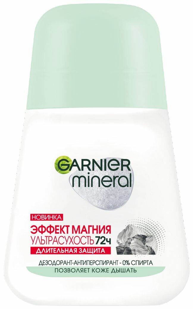Garnier Дезодорант-антиперспирант спрей "Эффект магния Ультрасухость" Наш первый дезодорант-антиперспирант с абсорбирующим магнием для защиты от запаха на 72 часа и мгновенной сухости. Позволяет коже дышать. Открой для себя силу магния – абсорбирующего минерала. Открой для себя силу магния – абсорбирующего минерала из натуральных горных пород, который впитывает в 4 раза больше влаги, чем тальк. Магнезия, в состав которой входит магний, часто используется спортсменами для обеспечения мгновенной сухости рук.