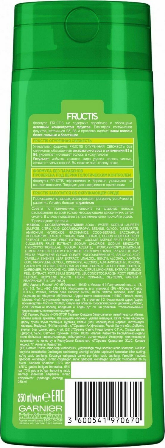 | Способ применения | нанесите шампунь на влажные волосы и массирующими движениями пальцев распределите его по коже головы; тщательно смойте водой; при попадании в глаза тщательно промойте водой |