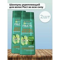 Укрепляющий шампунь «Рост Во Всю Силу» от Garnier Fructis предназначен для бережного очищения и восстановления волос изнутри, укрепления их структуры, придания густоты, гладкости и блеска слабым и ломким волосам. Волосы становятся более сильными, в 3 раза более устойчивыми к выпадению из-за ломкости*. Активные ингредиенты
