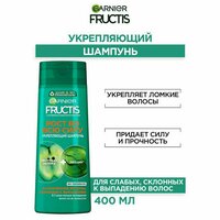 эффективностьукрепляющий шампунь для волос «Рост Во Всю Силу» предназначен для ухода за женскими, мужскими и подростковыми волосами и кожей головы всех типов, включая жирную, нормальную и сухую. Фруктовая формула с яблочным экстрактом действует по всей длине волоса, обеспечивая стойкий восстанавливающий эффект и глубокое питание очень тонких и поврежденных волос. Каждый день качество волос улучшается, они становятся густыми и блестящими от корней до самых кончиков. Шампунь подходит для ежедневного использования женщинами, мужчинами и подростками (мальчиками и девочками) с темными и светлыми волосами, а также окрашенными и натуральными. Шампунь способствует глубокому очищению кожи головы, оказывает отшелушивающее действие. Может использоваться в качестве подарка девушке, парню, брату, подруге, другу, жене, мужу, коллеге, маме, папе на 23 февраля, 8 марта, Новый год (НГ) или день рождения. Уважаемые клиенты! Обращаем ваше внимание на то, что упаковка может иметь несколько видов дизайна. Поставка осуществляется в зависимости от наличия на складе. Вы также можете найти данное косметическое средство по запросам: активатор, восстановитель, усилитель, стимулятор и ускоритель роста волос; недорогой шампунь для мытья прямых волос; уходовая косметика; товары, средства, стимулирующие рост волос; товары, эффективные для роста склонных к выпадению, ослабленных, поврежденных волос. * Инструментальный тест после применения шампуня и бальзама-ополаскивателя "Рост во всю силу".** Garnier Fructis – Гарньер Фруктис «Рост Во Всю Силу» Укрепляющий шампунь против выпадения волос из-за ломкости, 400 мл.