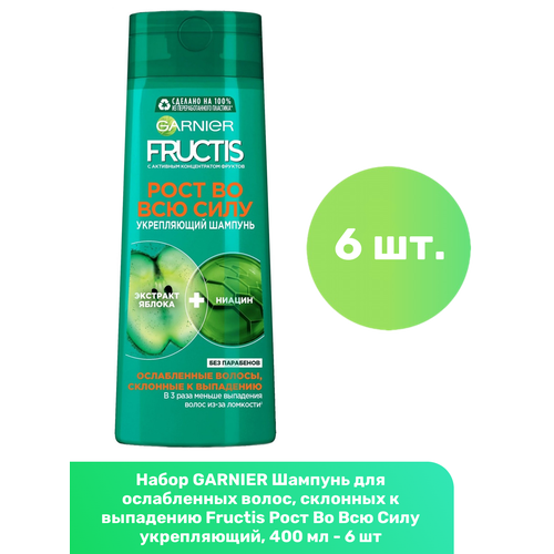 GARNIER Шампунь для ослабленных волос, склонных к выпадению Fructis Рост Во Всю Силу укрепляющий, 400 мл — 6 шт: сравнение цен, характеристики, фото, актуальное наличие и цены.