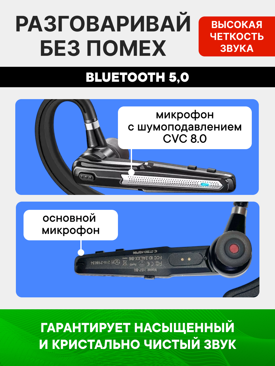 Гарнитура наушник беспроводная TAYMLUX HSP-B6! С этой Bluetooth гарнитурой TAYMLUX HSP-B6 Bluetooth v5.0 с поворотным микрофоном Вы навсегда избавитесь от плохой слышимости в разговоре на шумной автомагистрали или толпе, от страхов потерять гарнитуру или пропустить звонок, а также от неудобств с одеванием гарнитуры (наушника) на ухо. Эта беспроводная гарнитура наушник с выносным микрофоном для телефона (смартфона) оснащена чипсетом QCC3020 качественного звука, активной системой шумоподавления CVC8.