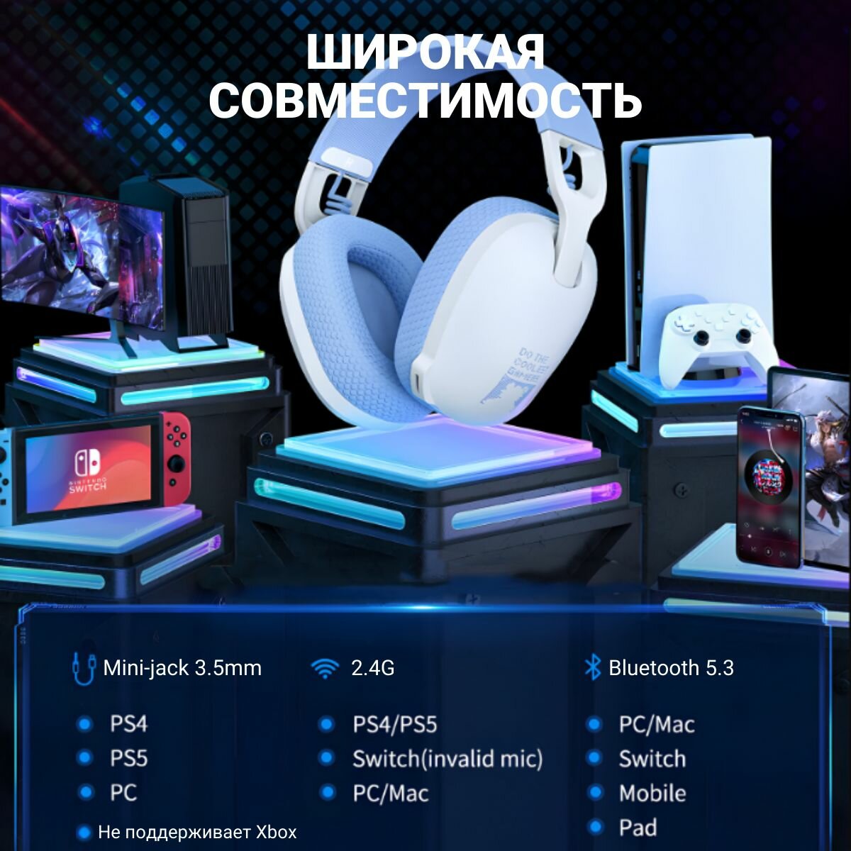 Купить Беспроводные игровые наушники с микрофоном ONIKUMA B2 (BT, 2.4G, AUX), белые с доставкой по всей России.