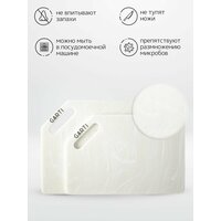 Материал досок - искусственный камень. Это экологичный материал, который не впитывает вкусы, запахи, не скапливает грибок, а еще не тупит ножи!