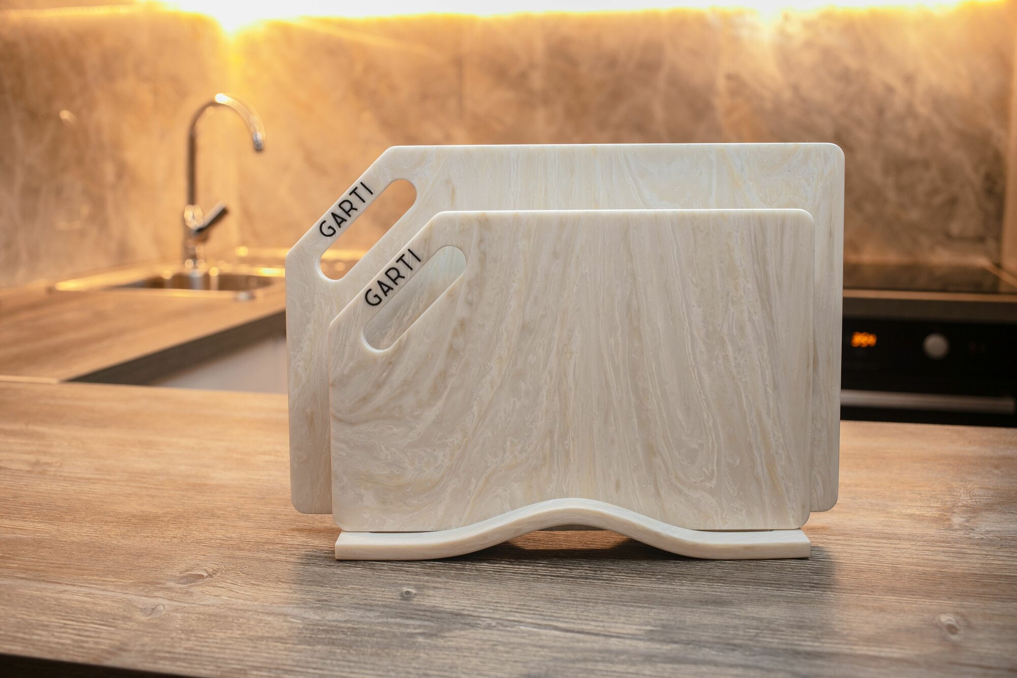 Купить Garti Набор из двух разделочных досок и двойной подставки PRIME Sahara доска сервировочная разделочная Гарти размер 30×20 см и 36×24 см материал искусственный камень. Solid. surface с доставкой по всей России.