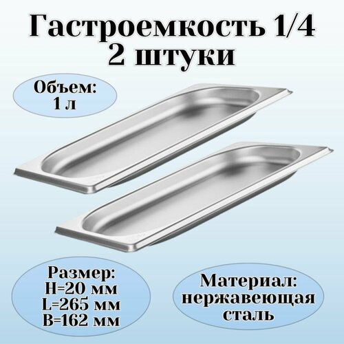 Купить Гастроемкость (1/4) H=20 мм L=265 мм B=162 мм, 2 шт, ProHotel с доставкой по всей России. Гастроемкость (1/4) H=20 мм L=265 мм B=162 мм, 2 шт, ProHotel: сравнение цен, характеристики, фото, актуальное наличие и цены.