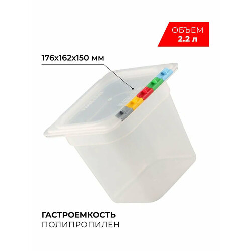 Гастроемкость бренда Restola – это удобное хранение и транспортировка продуктов и готовых блюд. Часто используется в ресторанном бизнесе, магазинах, столовых и на домашней кухне. Контейнер сделан из пищевого материала, полипропилен не выделяет вредных веществ при эксплуатации и полностью безопасен. Прозрачные стенки не трескаются и не деформируются при многоразовом использовании. На сайте интернет магазина есть крышка, которая подходит под размер контейнера. Имеет небольшой вес и легко складируется одна в одну. Объем 2,2 л.