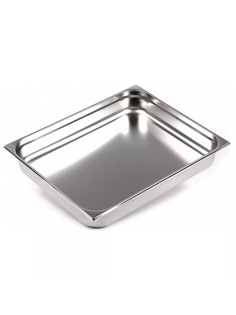 Гастроемкость из нержавеющей стали Gastrorag GN 2/1-100, модель 21100, размеры 65x53x10 см, объем 29 л. Гастрономические емкости из нержавеющей стали – это удобный и многофункциональный кухонный инвентарь. Изначально он предназначался для профессиональной кухни и использовался для приготовления, хранения, транспортировки, подачи пищи, сервировки и выкладки продуктов на пищевых производствах, предприятиях общепита, в супермаркетах. Особенность этого вида посуды для кухни в том, что его размеры соответствуют единому европейскому стандарту гастрономической тары. За основу берется размер GN 2/1 (65х53 см), существуют также кратный размер GN 1/1 (53х32.5 см) и дробные размеры GN 1/3 (32.5х17.6 см), GN 1/4 (26.5х16.2 см), GN 1/6 (17.6х16.2 см), GN 2/3 (35.4х32.5 см), GN 1/2 (32.5х26.5 см), GN 1/9 (17.6х10.8 см). Глубина лотков также стандартизирована и составляет 2, 4, 6.5, 10, 15 и 20 см. Со временем гастроемкости из нержавейки стали незаменимыми помощниками и на домашней кухне. Вы можете использовать их для приготовления и хранения блюд, маринования шашлыка, расстойки теста. Прямоугольные лоточки позволяют организовать рациональное хранение в холодильнике и очень удобны в качестве посуды для холодца. Контейнеры большого размера совместно с погружными термостатами подойдут для приготовления блюд методом су вид. Посуда изготовлена из пищевой нержавеющей стали, отличается прочностью, легко выдерживает высокие и низкие температуры, инертна по отношению к пищевым продуктам – не меняет вкуса блюд, которые в ней готовятся и хранятся, не нуждается в специальном уходе. Ее можно мыть в посудомоечной машине. А благодаря стандартным размерам и форме лотки компактно складируются и не занимают много места при хранении. Гастроемкости Gastrorag могут быть также укомплектованы крышками из нержавеющей стали.