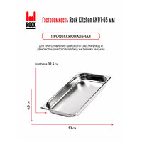 Гастроемкости Rock Kitchen подходят для работы с пищевыми продуктами разной степени готовности и упрощают процесс создания эффективной технологической цепочки, поскольку имеют универсальные размеры и подходят к любым видам теплового и холодильного оборудования. Вместительные прямоугольные противни с высокими стенками легко перемещать из одного аппарата в другой, без затрат времени на перекладывание заготовок. Емкости Rock Kitchen с легкостью встраиваются в холодильные витрины, мармиты, жарочные, пекарские и расстоечные шкафы, духовки, хосперы и прочее оборудование. Металлические контейнеры для еды одного формата разной глубины(высоты) также возможно установить друг в друга, что позволяет экономить место в холодильнике или использовать одну из ёмкостей в качестве крышки.