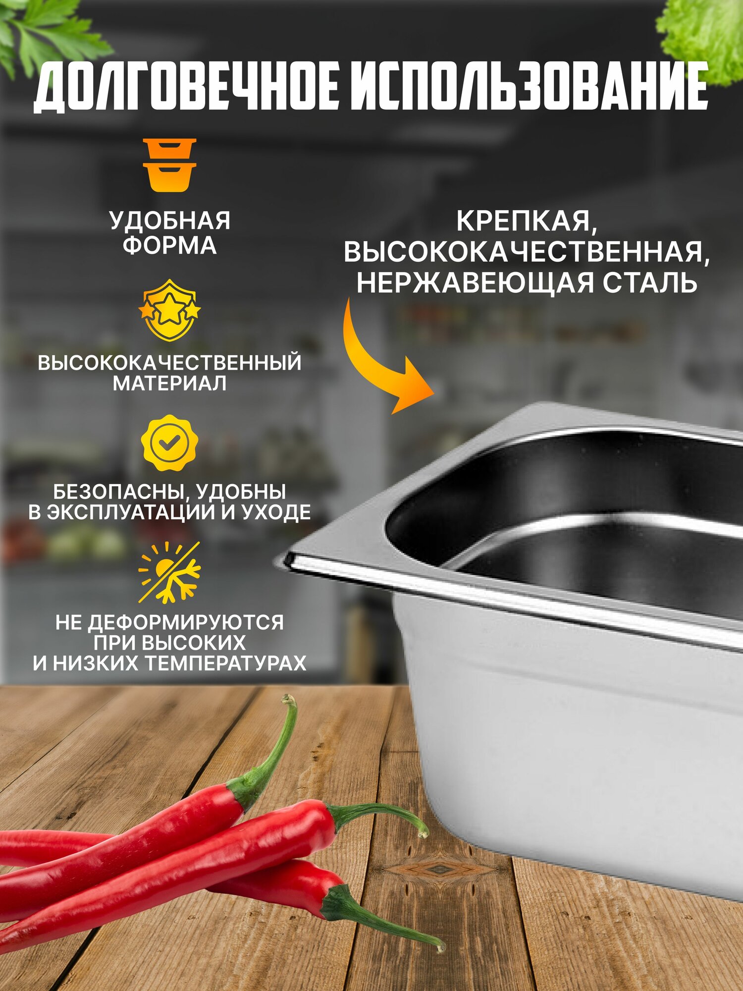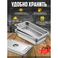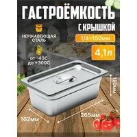 Гастроемкость из нержавеющей стали с крышкой, контейнер для еды, лоток 4.1 л, 1/4*150 мм (265*162*150 мм) для хранения, приготовления продуктов.: сравнение цен, характеристики, фото, актуальное наличие и цены.