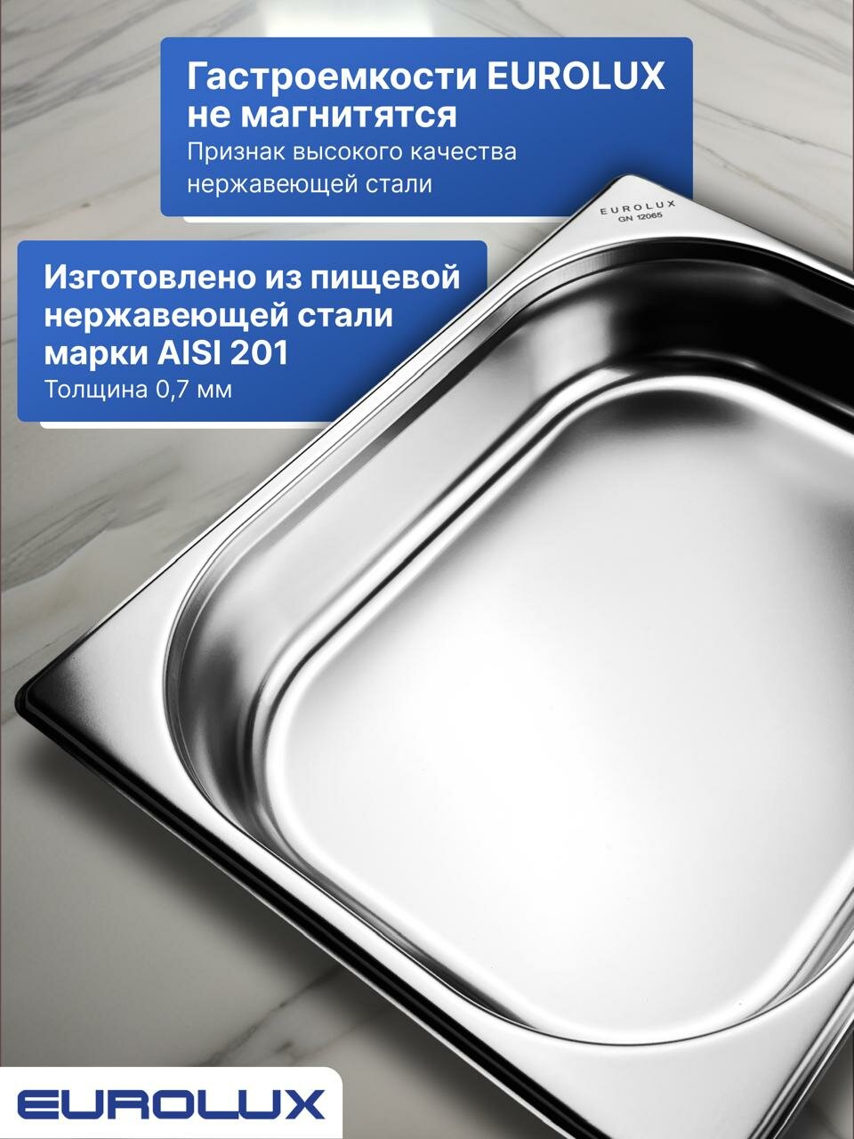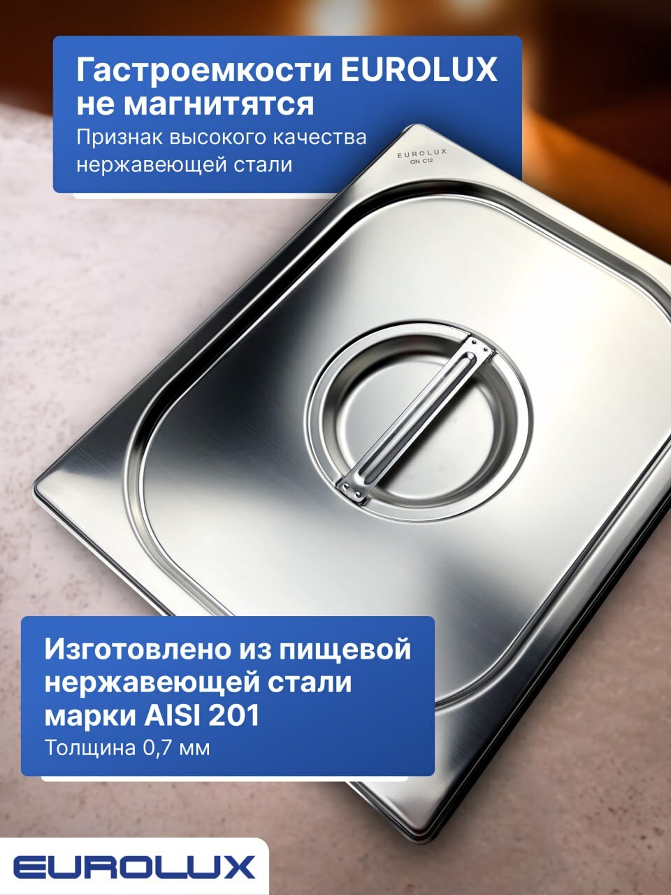 Гастроемкость с крышкой EUROLUX GN1/2 040.(325х265х40)мм. нержавеющая сталь.: сравнение цен, характеристики, фото, актуальное наличие и цены.