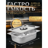 Гастроемкость с крышкой EUROLUX GN1/2 100.(325х265х100)мм. нержавеющая сталь.: сравнение цен, характеристики, фото, актуальное наличие и цены.