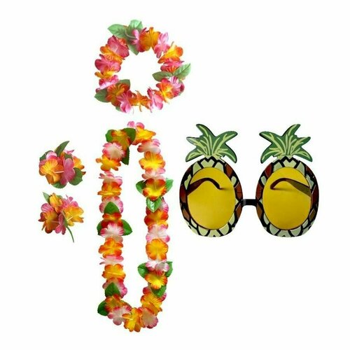 Гавайский набор Хула - 11: гавайское ожерелье, повязка на голову, браслеты, очки