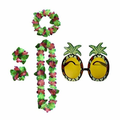 Гавайский набор Хула - 3: гавайское ожерелье, повязка на голову, браслеты, очки.