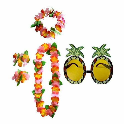 Гавайский набор Хула - 6: гавайское ожерелье, повязка на голову, браслеты, очки