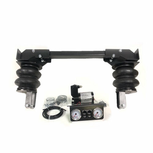 Комплект разработан под конкретный автомобиль и включает в себя инструкцию по установке, две фирменные подушки с внутренним буфером, кронштейны для крепления, метизы, фитинги и безресиверную систему управления с компрессором (панель поставляется в собранном виде).