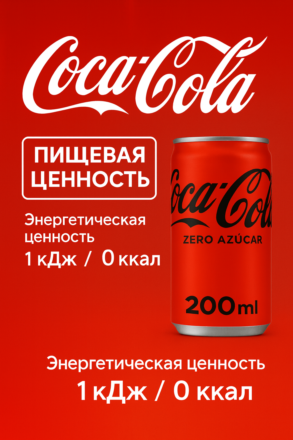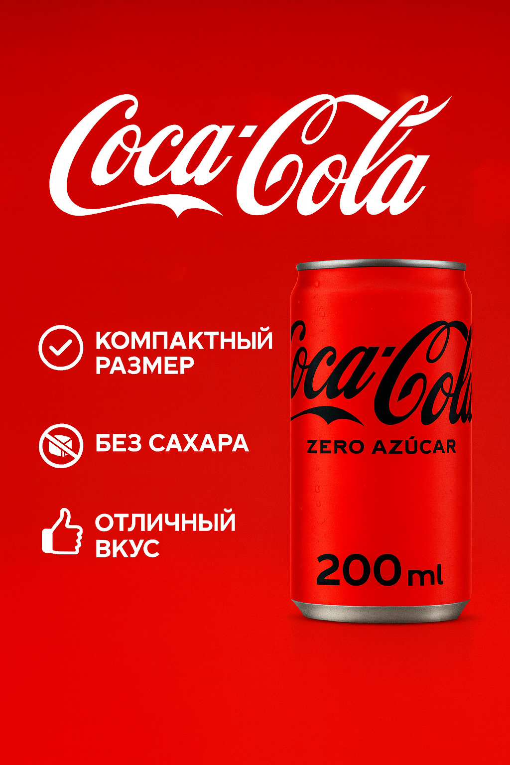 Coca-Cola Zero Azúcar Mini 200 мл — компактный газированный напиток премиального качества, созданный для тех, кто любит яркий вкус, но выбирает лёгкость.