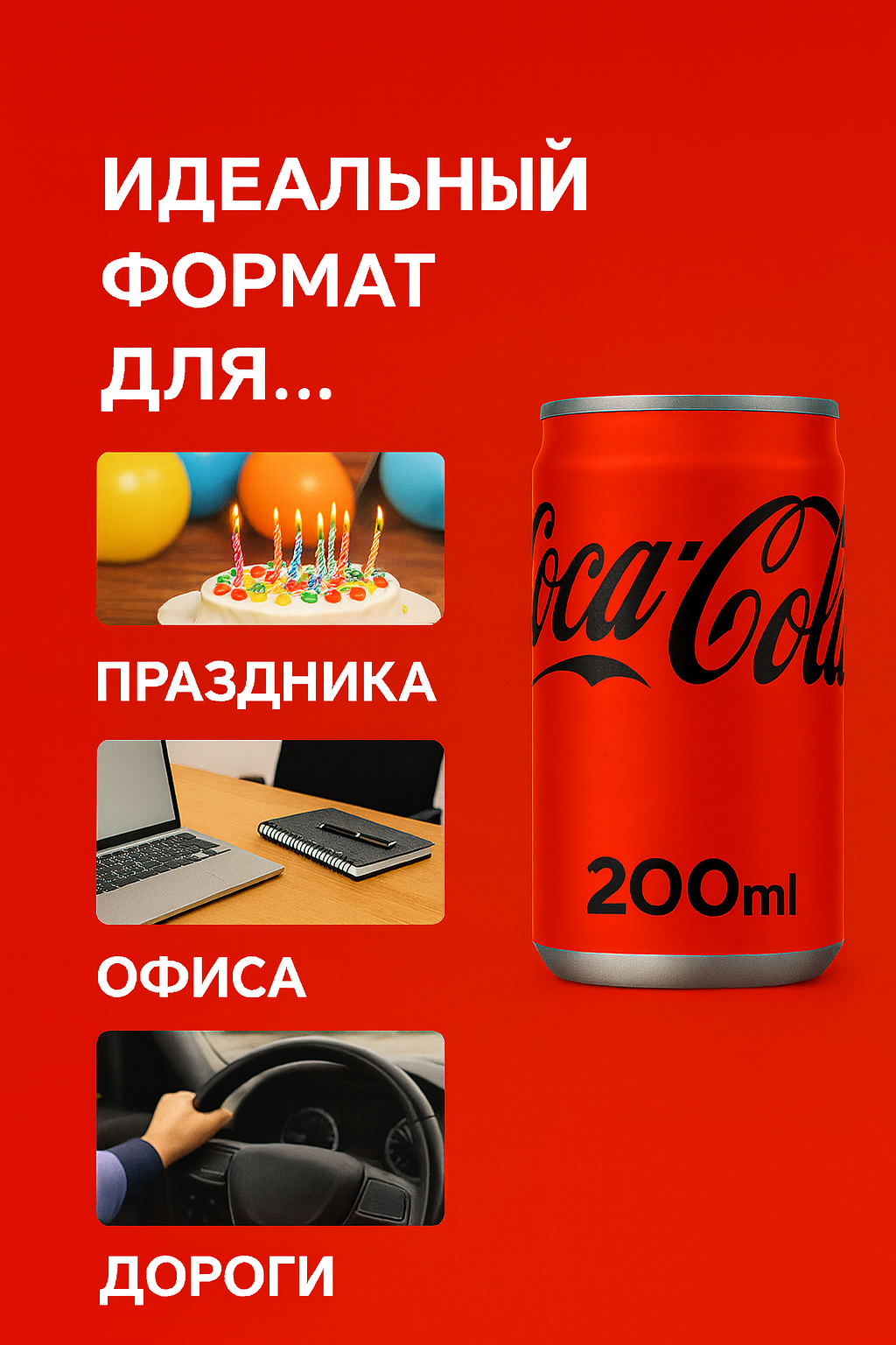 Это идеальная газировка без сахара, которая сочетает классический аромат Coca-Cola и полностью обновлённую формулу Zero. В каждой мини-баночке — тот самый вкус, который знают во всём мире, только теперь в ещё более удобном формате.