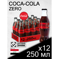 Coca-Cola Zero, 0.25 л, стеклянная бутылка, 12 шт — диетический газированный напиток Кока-Кола Зеро без сахара, производство Ирак.