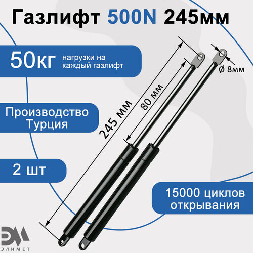 Купить Газлифт 500N 245мм, 2 шт. с доставкой по всей России. Газлифт 500N 245мм, 2 шт.: сравнение цен, характеристики, фото, актуальное наличие и цены.