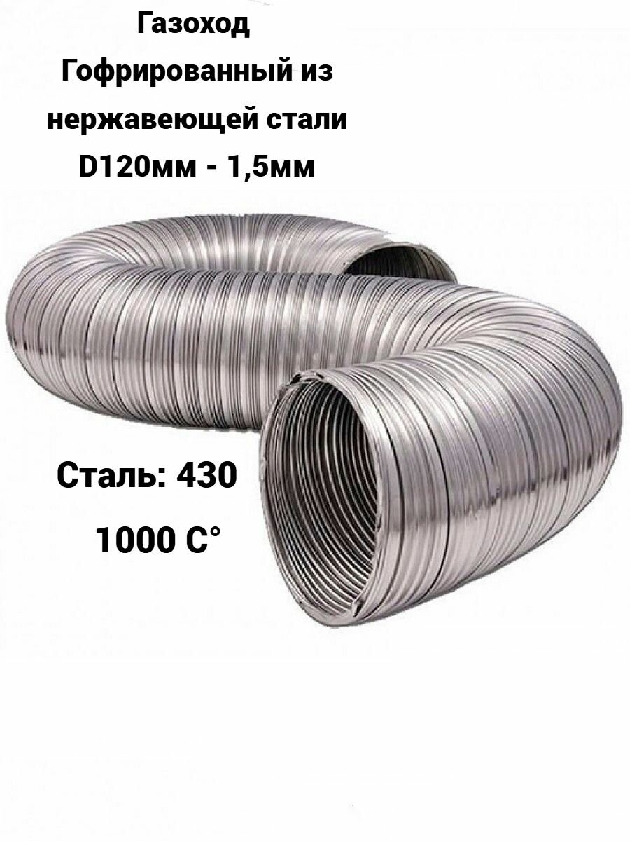 Купить Газоход гофрированный D120мм (1,5м) из нержавеющей стали, вентиляции, дымоход с доставкой по всей России. Газоход гофрированный D120мм (1,5м) из нержавеющей стали, вентиляции, дымоход: сравнение цен, характеристики, фото, актуальное наличие и цены.