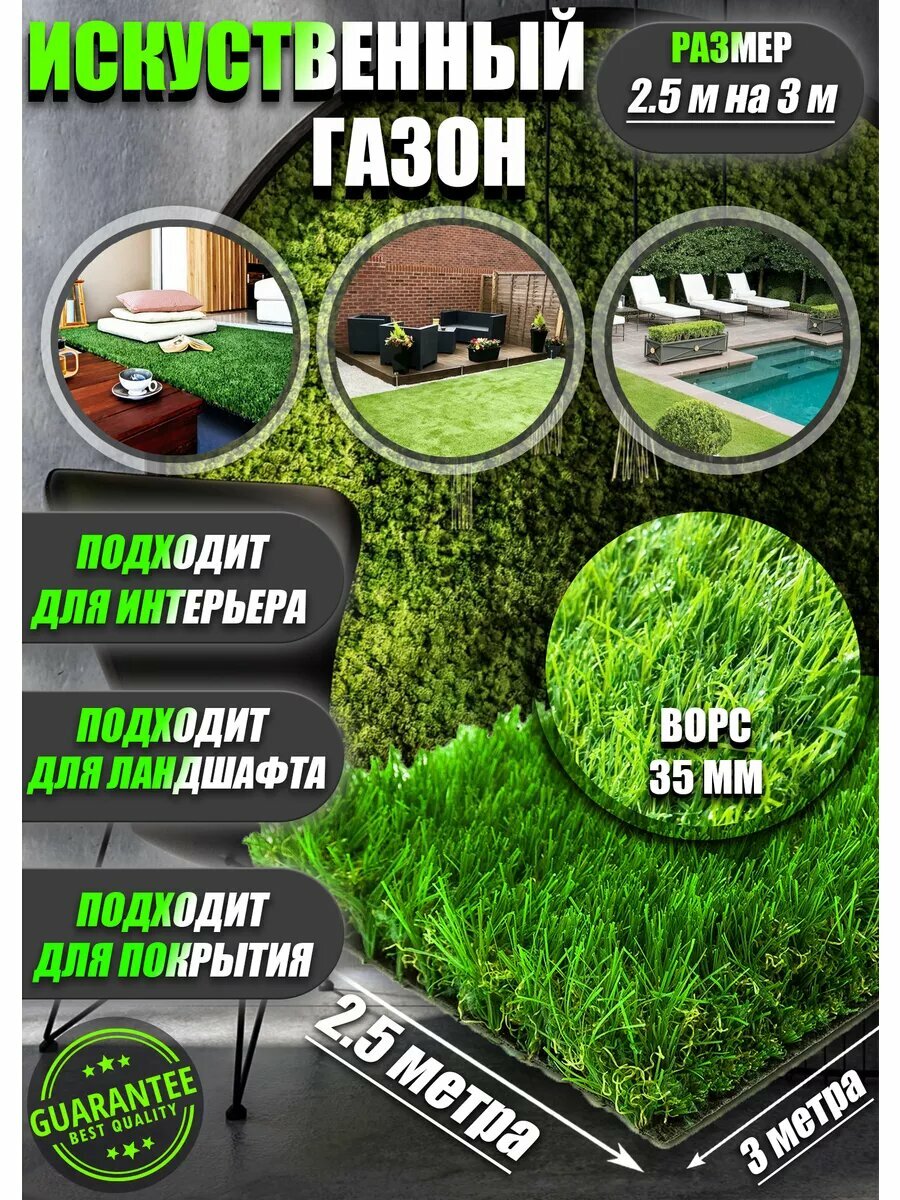 Газон искусственный 2.5 на 3 (высота ворса35мм): сравнение цен, характеристики, фото, актуальное наличие и цены.