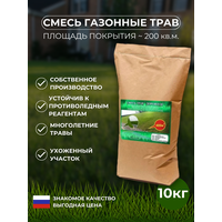 Газонной травы в упаковке 10 кг достаточно для озеленения большой территории. Семена подобраны с учетом климатических особенностей, что гарантирует отличную всхожесть.
