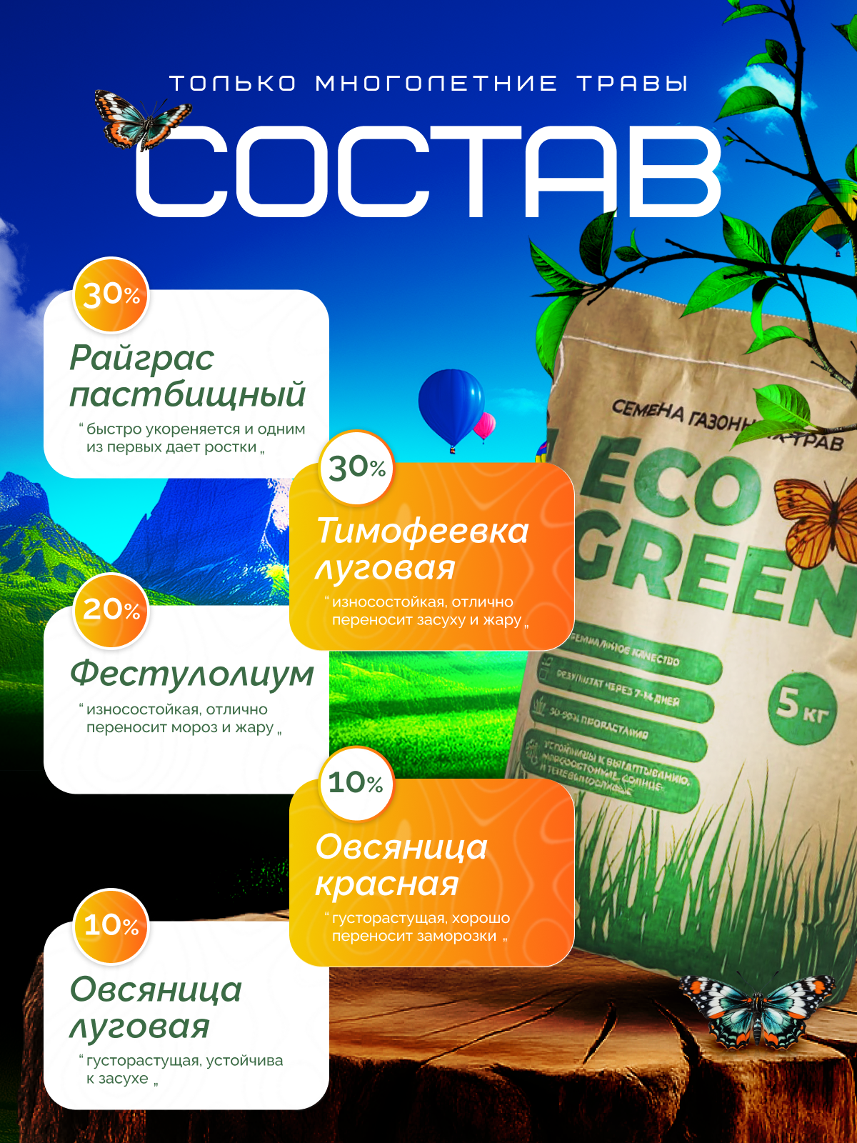 Идеальный газон без сорняков, минимум хлопот! Травосмесь Эко Грин «Экономная» - лучшее решение для создания красивого газона.