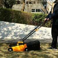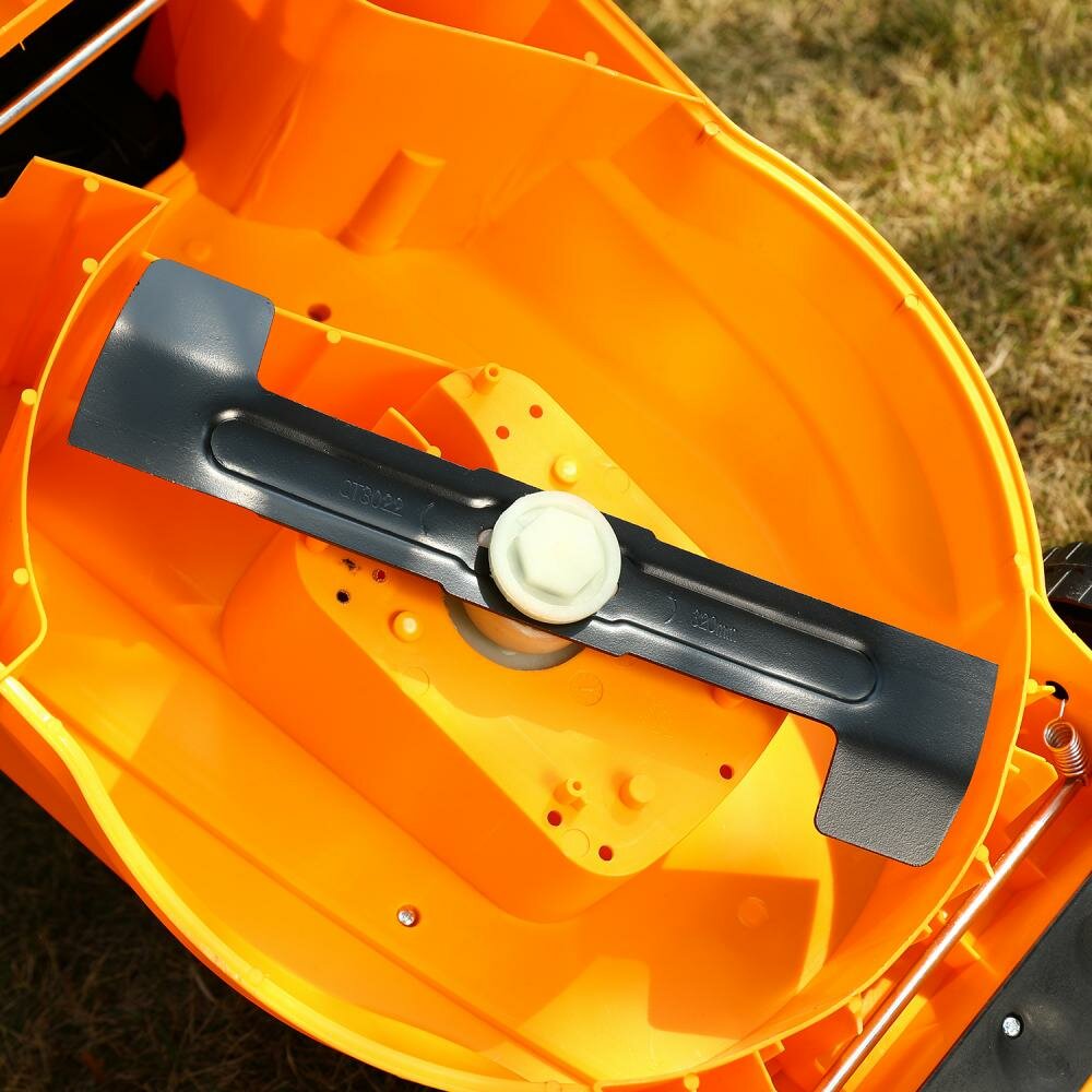Газонокосилка поставляется в частично разобранном виде: газонокосилка - 1шт, нижняя рукоятка - 1шт, верхняя рукоятка - 1шт, травосборник - 1шт (левая половина, правая половина, крышка), крепежные винты - 2шт.