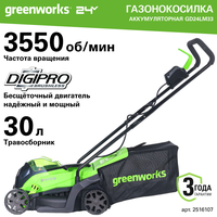 Газонокосилка аккумуляторная Greenworks GD24LM33, 24V, 33 см, бесщеточная, без АКБ и ЗУ, 2516107: сравнение цен, характеристики, фото, актуальное наличие и цены.