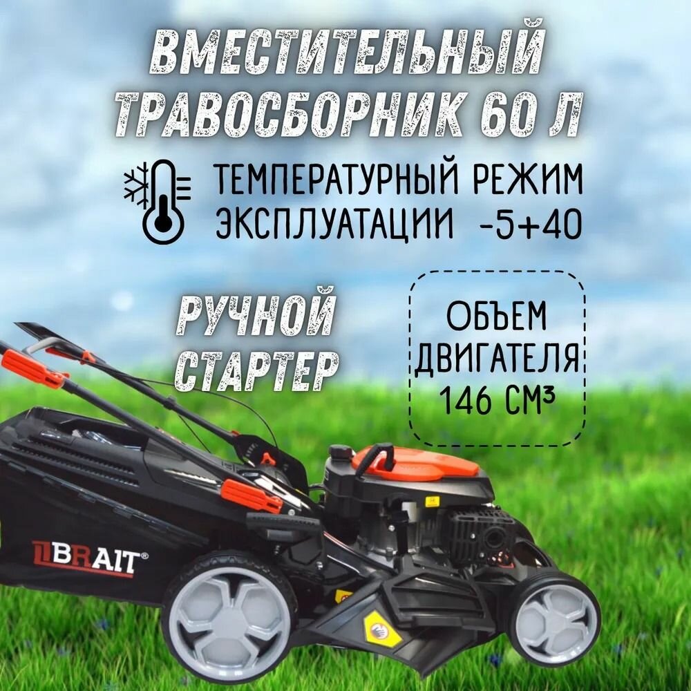 | Конструктивные особенности | Боковой выброс травы, Мульчирование собранной травы |