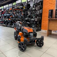 - Бензиновый двигатель с объемом 196 см³ обеспечивает достаточно высокую мощность для работы на больших участках с различными условиями. Такая мощность позволяет газонокосилке эффективно справляться даже с густой, высокой травой и небольшой растительностью.