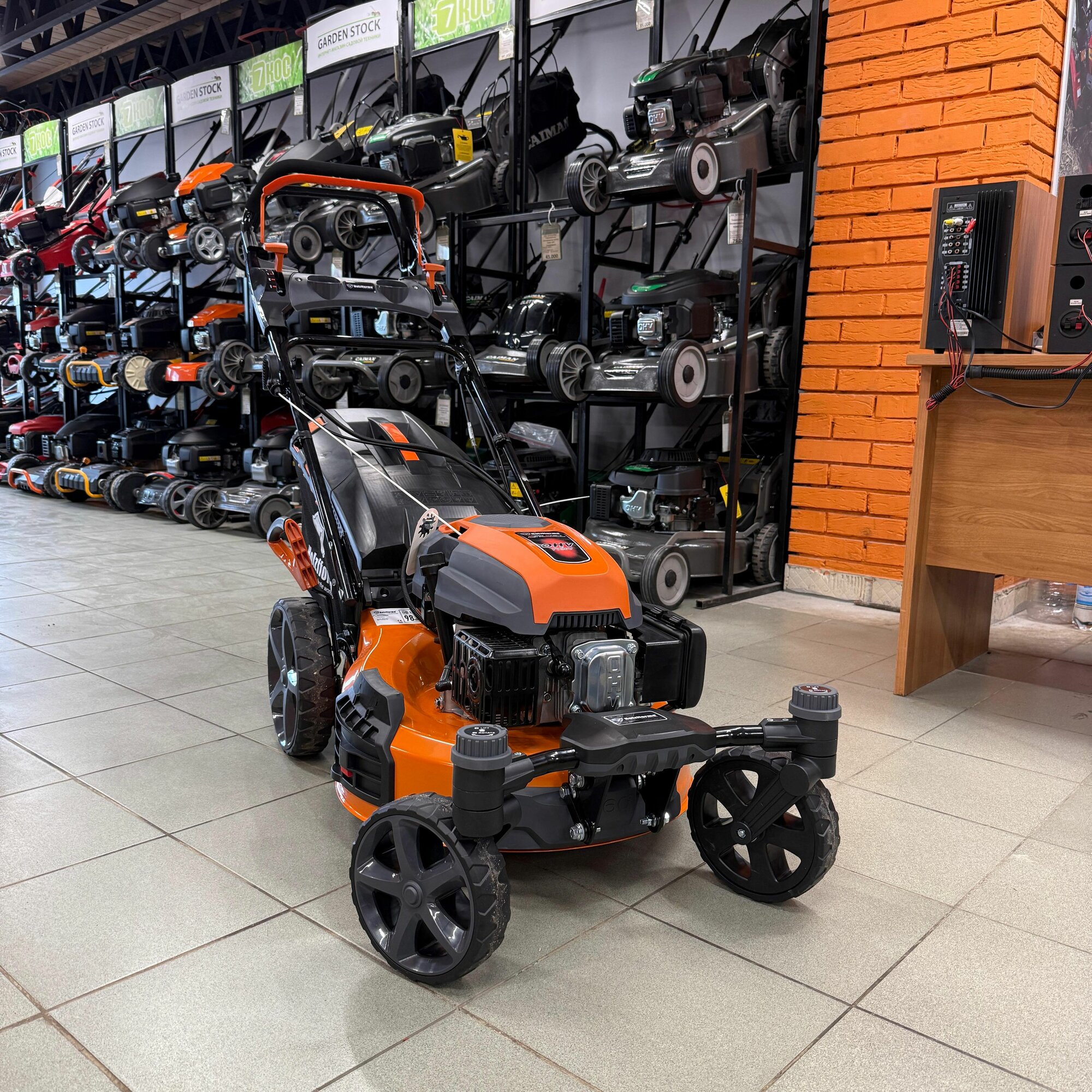 - Широкая рабочая поверхность газонокосилки обеспечивает быстрое и эффективное покрытие больших площадей. Такая ширина скашивания значительно сокращает время работы и повышает продуктивность.