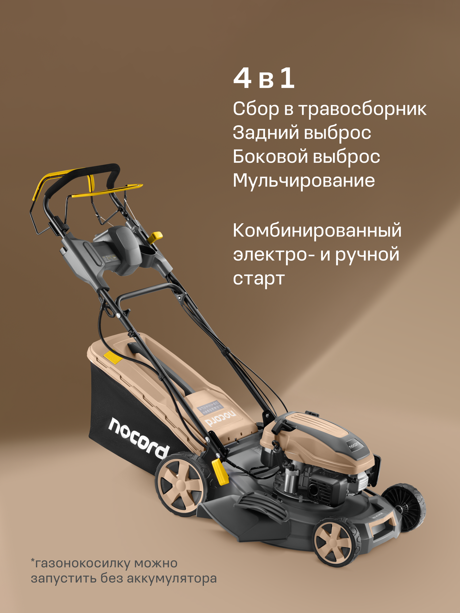 Купить Газонокосилка бензиновая Nocord NLG-46.144. SE, ширина 46 см, 144 см3, привод, электростарт без АКБ 2 А*ч и ЗУ, Omnifit с доставкой по всей России. Газонокосилка бензиновая Nocord NLG-46.144. SE, ширина 46 см, 144 см3, привод, электростарт без АКБ 2 А*ч и ЗУ, Omnifit: сравнение цен, характеристики, фото, актуальное наличие и цены.